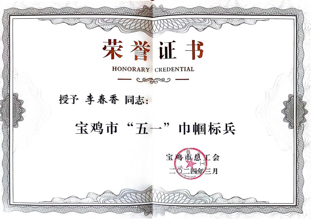 扎根一线 风华无限||伟德体育官方网站股份李春香喜获宝鸡市“五一巾帼标兵”荣誉称号