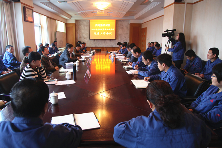 10月15日下午,根据2014年纪检监察巡查工作的安排,西电集团纪委来我公司开展2014年度纪检监察巡查工作。纪检监察巡查工作会议在公司科技大楼四楼大会议室召开。西电集团党委常委、纪委书记白武勤,纪委副书记韩巍,纪委副书记、监察部部长李江平,以及巡查工作组6名成员参加了会议,公司党委副书记、纪委书记付宗喜,集团公司副总经理岳永学,以及集团、股份公司相关单位负责人,共40余人参加了巡查工作会议。会议由岳永学同志主持。