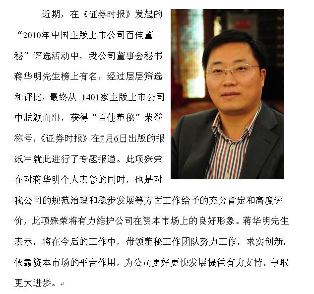 我公司董事会秘书蒋华明先生获得“百佳董秘”荣誉称号