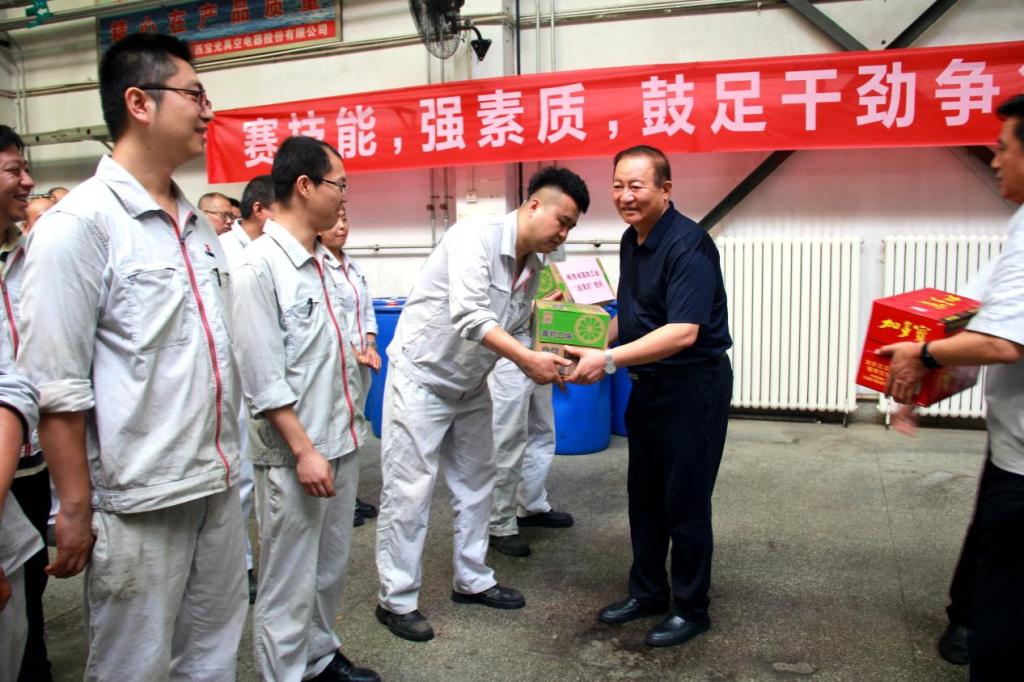 吴主席一行先后来到灭弧室产品制造部、零件产品制造部、精工电器公司,向奋战在一线的职工送去脉动、加多宝等清凉饮料,并叮嘱大家在完成生产任务的同时,要注意防暑降温,注意休息,劳逸结合,增强自身防护意识,做好自身劳动防护。