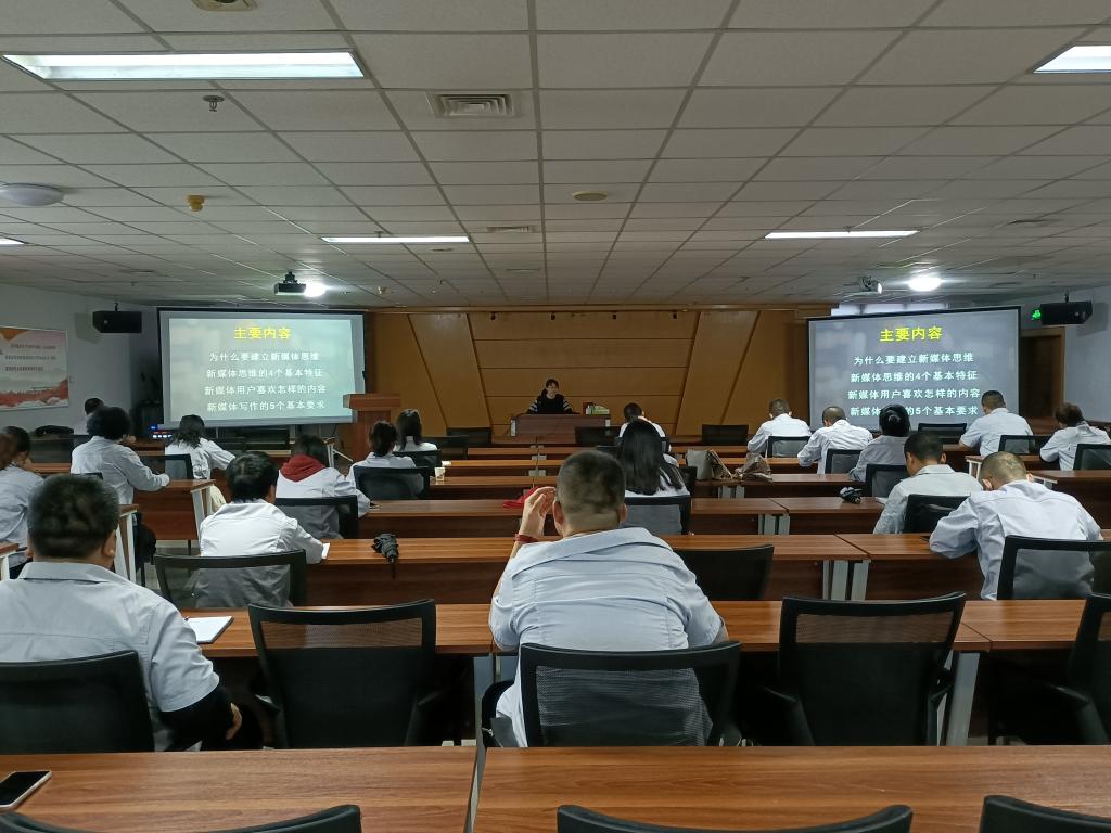 本次培训特邀宝鸡文理学院文学与新闻传播学院余亚莉副教授讲授,余老师长期研究新闻和新媒体采编实务,她结合自身丰富的新闻教学、写作经验,运用通俗风趣的语言,以“新媒体思维的建立--通讯员的新媒体素养”为题,从为什么要建立新媒体思维,新媒体思维的四个基本特征、新媒体用户喜欢什么样的内容、新媒体写作的6个基本要求四个方面,就企业专、兼职通讯员如何做好企业新媒体宣传工作进行了详实的授课。尤其是讲到在新形势下,如何充分利用好新媒体做好企业的宣传工作,值得大家思考;面对重要信息、重大成就、经济数据等新闻素材,挖掘提炼最具代表性的数据,用简单直白的方式,用“见微知著”的办法,把最亮眼的信息传递给读者等内容时,赢得了参训人员的阵阵掌声。