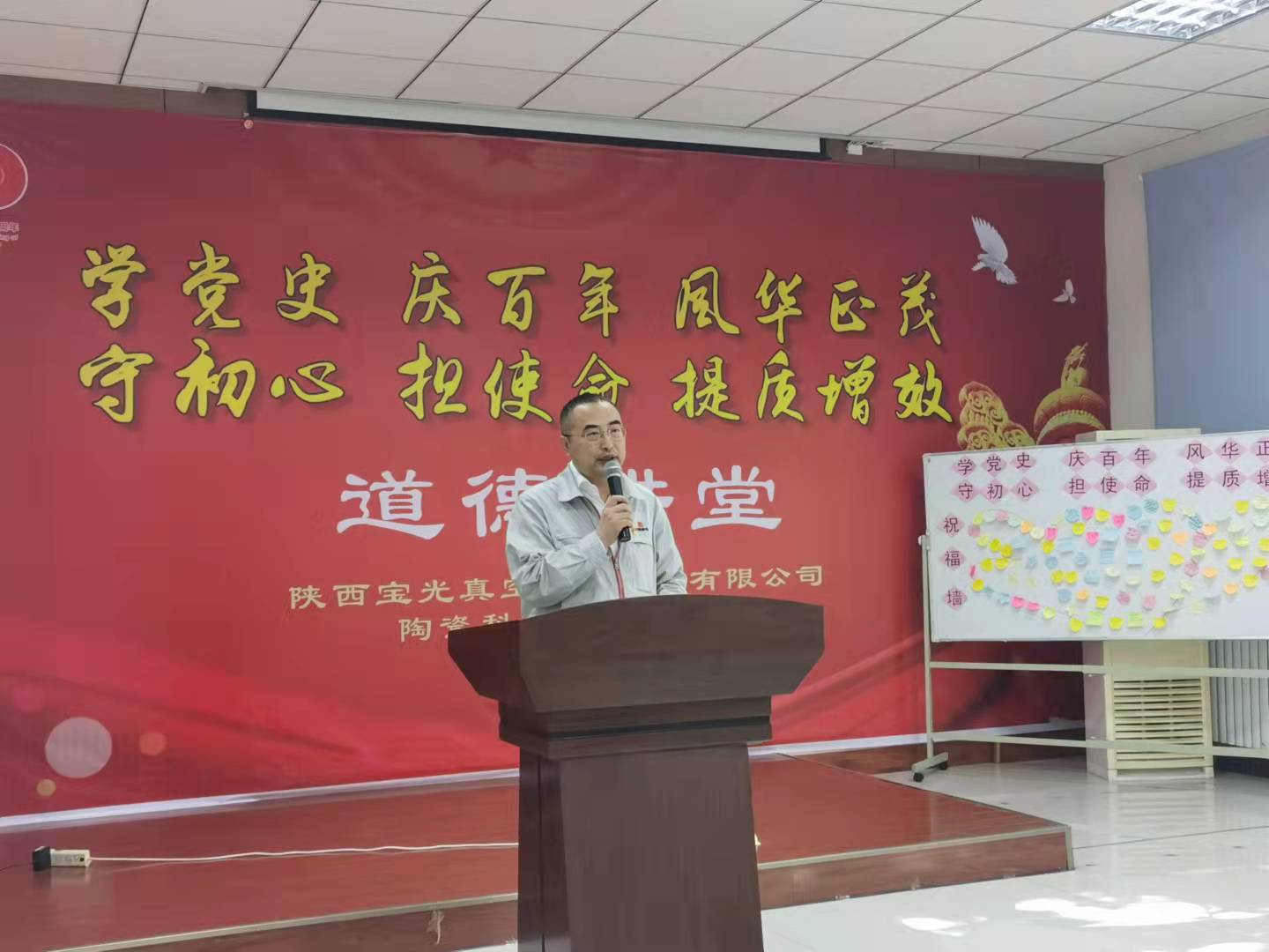 “唱支山歌给党听, 我把党来比母亲......”9月30日下午,在高昂激越、催人奋进的歌声中,由伟德体育官方网站股份党委工作处主办,陶瓷科技公司党支部承办的“学党史、庆百年、风华正茂; 守初心、担使命、提质增效”主题道德讲堂盛大开启。伟德体育官方网站股份党委书记、总经理谢洪涛,伟德体育官方网站股份工会主席、纪委书记付宗喜,伟德体育官方网站股份副总经理袁军为应邀出席活动。