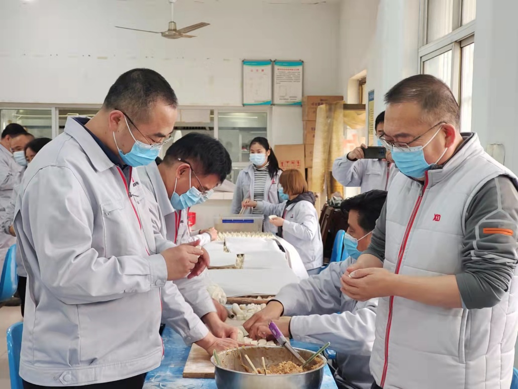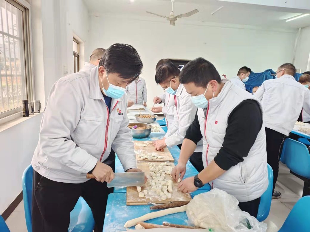 公司驻厂领导、一些干部职工紧张忙碌起来,有的擀有的包,场面温馨感人,元宝形、月牙形,不同形状的饺子整齐地排列在一起足有一万多只,不仅分担了后勤保障人员的工作压力,还用实际行动彰显着严肃活泼的工作作风和凝聚奋进的精神品质。好吃不过饺子,温暖不过集体。在这个特殊时期能吃到手工水饺令人难忘,虽然暂时不能和家人、亲友团聚,但大家相互关心、相互鼓励让每位员工感受到了大家庭的温暖,心底涌起一股股暖流。