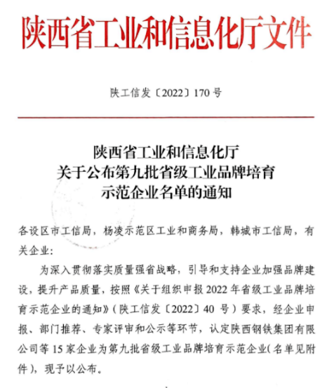 近日,陕西省工业和信息化厅公布了第九批省级工业品牌培育示范企业名单,伟德体育官方网站股份成功入选并荣获“省级工业品牌培育示范企业”称号。