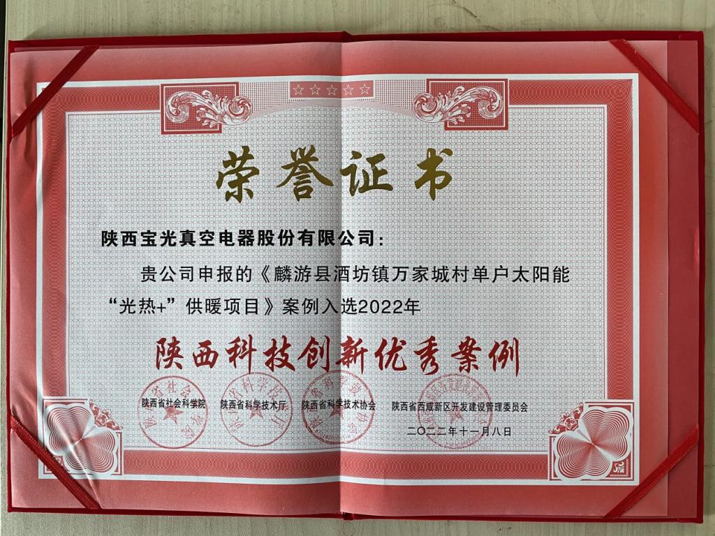 近日,陕西省社会科学院、陕西省科学技术厅、陕西省科学技术协会、陕西省西咸新区开发建设管理委员会联合发布“2022年陕西科技创新优秀案例”,伟德体育官方网站股份申报的《麟游县酒坊镇万家城村单户太阳能“光热+”供暖项目》成功获选高效治理高品质生活组“陕西科技创新优秀案例”。