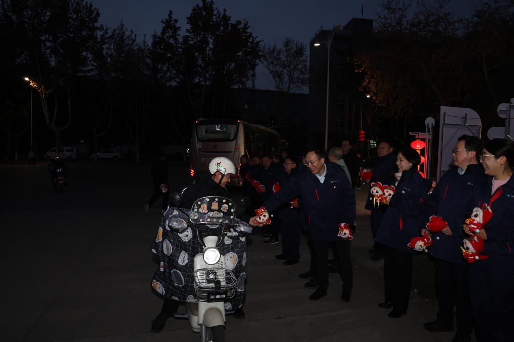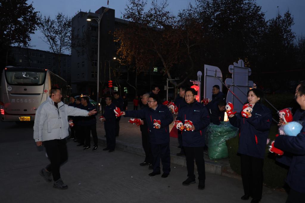 在振奋人心的阵阵锣鼓声中,职工们带着节日的喜悦,满怀信心,以饱满的精神状态,踏着铿锵有力的步伐迈入公司的大门。公司领导热情地向职工们挥手致意、拱手拜年,向他们亲切地道一声“过年好”并送上寓意吉祥的蛇年吉祥物,送去公司领导对广大职工的祝福与期许。