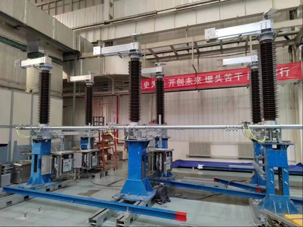 由西开电气为乌海敖瑞500千伏输变电项目安装的7个间隔550kVGIS和7个间隔220kV HGIS一次性通过工频耐压试验。乌海敖瑞500千伏输变电工程位于内蒙古自治区巴彦淖尔市乌拉特后旗获各琦苏木境内,是内蒙古自治区首批沙、戈、荒新能源大基地重点建设项目。为确保优质高效完成该项目安装任务,项目团队积极沟通施工方,制定详细切实可行的安装计划,动态实施全过程质量监督和预控管理,积极克服蒙西地区低温寒冷风沙大的极端天气,主动发扬“特别能吃苦、特别能战斗、特别能奉献”的优良传统,全力抢抓施工进度,助力敖瑞500千伏输变电工程顺利投产。