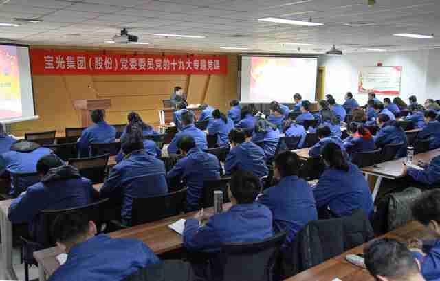 12月13日晚18:30时,伟德体育官方网站集团(股份)党委委员党的十九大精神专题党课,在公司科技大楼2楼大会议室进行,李军望同志以《统一思想抓落实——深入学习贯彻习近平新时代中国特色社会主义思想》为主题,为来自进出口公司、C产品制造部、固封极柱产品制造部等3个党支部的100余名基层党员做了专题党课。