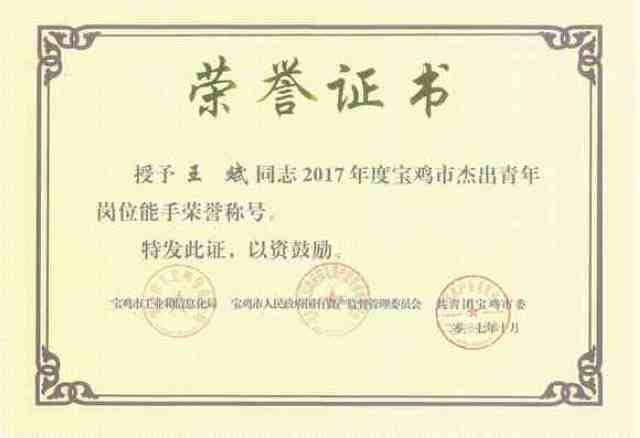 日前,零件事业部弹性元件产线成型组班组长王斌,喜获宝鸡市“杰出青年岗位能手”荣誉称号。此次评选活动是由共青团宝鸡市委、市工业和信息化局、市人民政府国有资产监督管理委员会联合组织,旨在引导和鼓励广大青年不断提高职业技能,增强创业创新热情,造就一大批品德优良,技能精湛、勇于创新、成绩突出的优秀青年人才。据悉,2017年宝鸡市共有10人获得“杰出青年岗位能手”荣誉称号。