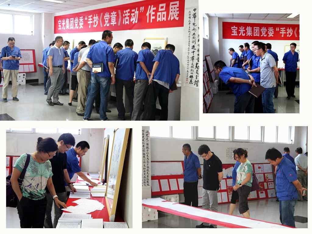 根据公司党委“两学一做”学习活动安排,从5月份开始公司全体党员开展手抄《党章》活动,各基层党支部按照公司党委要求,全体在职党员均按时完成了手抄《党章》,各党支部均推选出3篇以上优秀手抄《党章》作品。截止6月24日,党群工作部共收到手抄《党章》作品100余份。大家通过硬笔书法、毛笔书法、手抄报、国画等多种形式积极参加手抄《党章》活动。经过党群工作部近一周的筹备、布置,各个基层党支部的手抄《党章》优秀作品于7月12日正式开展,前来观看的党员、领导及职工均对筹备展览工作给予了充分肯定,也对广大党员的参展作品给予了高度的评价。