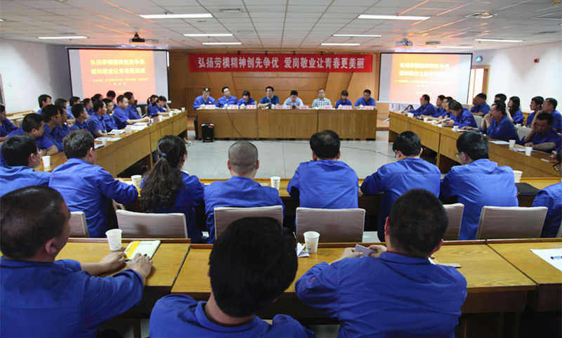 5月15日下午,伟德体育官方网站团委组织召开了先进青年集体代表、先进青年职工“学习劳模、创先争优”座谈会。座谈会的主题是:弘扬劳模精神创先争优,爱岗敬业让青春更美丽。公司领导李军望、付宗喜、袁军为参加了座谈会,技术部部长李鹏,工会副主席姜万宏,全国劳动模范李帆,宝鸡市十大杰出工人邓东蕾,以及2014年度公司“四优”共产党员、青年职工代表和2014 年新进大学生代表,近80人参加了座谈会。