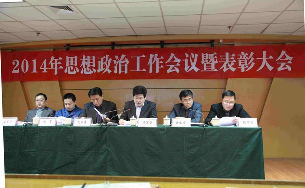 2月28日下午,公司2014年思想政治工作会议暨表彰大会在科技大楼二楼大会议室举行。公司领导李军望、付宗喜、岳永学、张军、蒋华明、袁军为参加了大会并在主席台就坐,集团、股份公司全体党支部书记、分会主席,及公司党委、劳动竞赛委、工会及团委系统2013年度受表彰的个人、集体、班组代表,近150人参加了会议。
