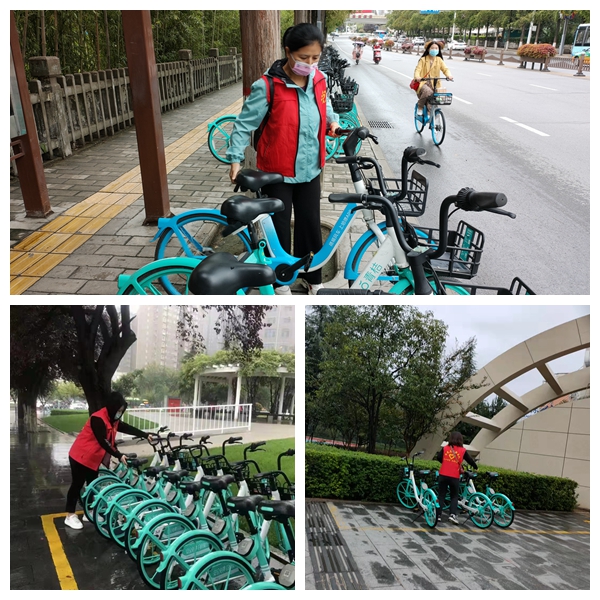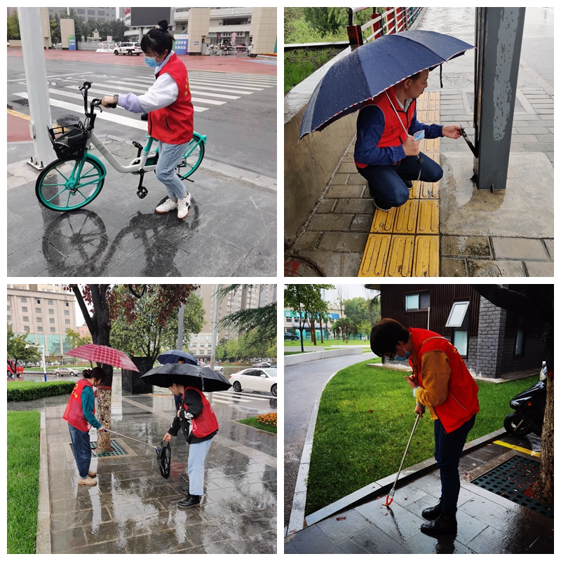 在近日连续强降雨的天气里,志愿者们风雨无阻每天早上坚持7:30按时到岗开展志愿服务活动。他们身穿红马甲,手拿垃圾夹,冒雨沿着金渭大桥南至伟德体育官方网站路转盘巡回开展志愿活动,认真地清理路面上的碎纸屑、饮料罐、烟头等垃圾。同时将共享单车摆放在规定的区域内,保持整齐美观和人行道路的通畅。