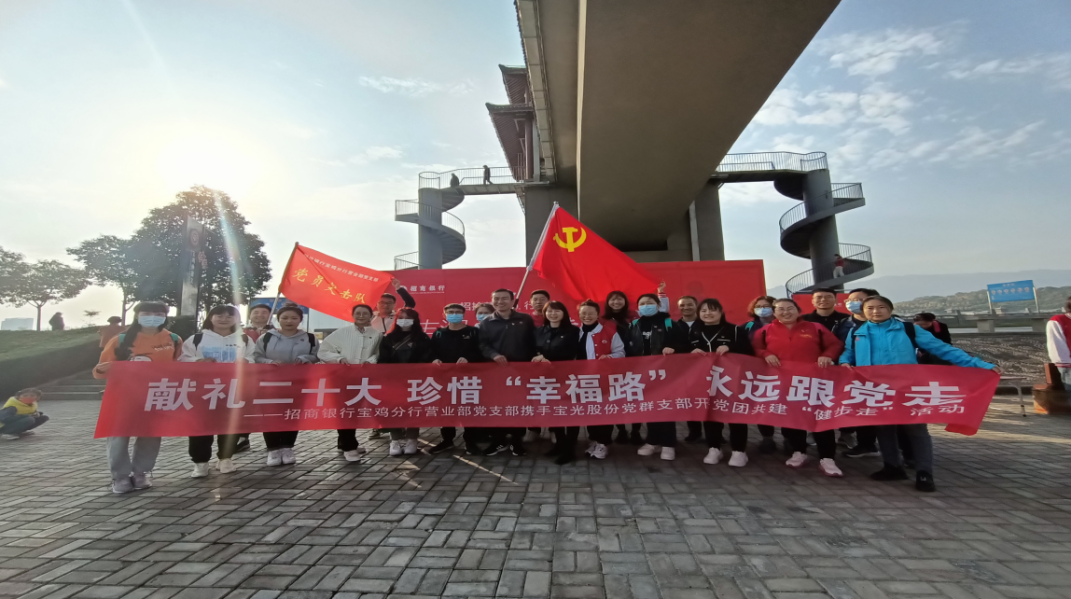 秋日暖阳,金风送爽,为庆祝党的二十大胜利召开,丰富职工文化生活,10月22日上午,伟德体育官方网站股份党群党支部与招商银行宝鸡分行营业部党支部携手开展党团共建“健步走”活动,党群党支部近20名党员群众参加了活动。
