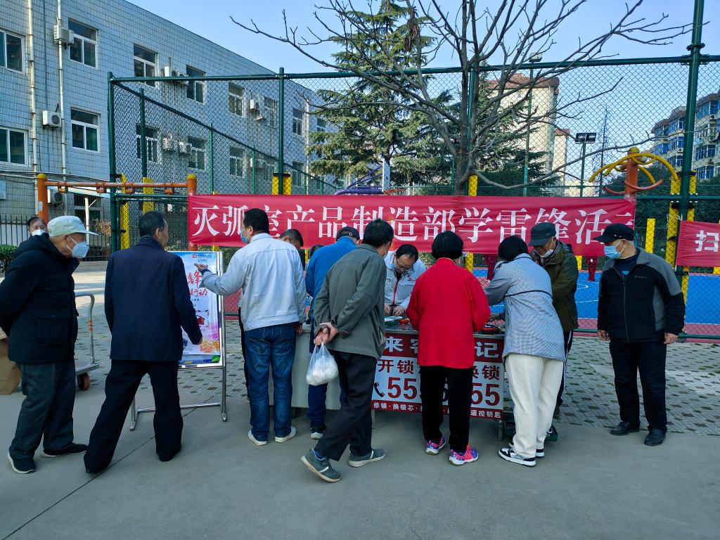 5日,灭弧室产品制造部党支部发动支部党员群众兵分两路,分别来到社区和车间进行志愿服务活动。139名学雷锋志愿者准时集合,分小队开展志愿服务,累计为社区群众修理电器四十余件、焊接修补厨具十余件。车间志愿者完成1#、3#厂房生产区域的地面卫生清理、七十余辆运输车辆皮垫粘贴、区域线定制粘贴、外墙玻璃清理等行动,雷锋精神在这个春天里又一次绽放。