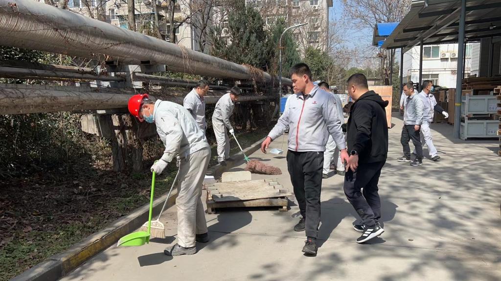 精工分公司党支部电器产线职工对产线窗户上玻璃和窗台进行擦拭,并对花坛内树叶垃圾、花房前建筑垃圾进行了仔细清扫和集中装运清理;波纹管产线职工对产线外车棚地段卫生进行清理,并对乱停乱放的车辆进行规范摆放。通过2个小时的紧张劳动,路面变得整洁干净、窗户玻璃变得一尘不染、花房前的环境焕然一新。
