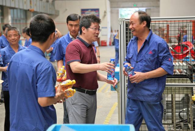 在生产一线,领导们为一线员工递上一瓶瓶清凉饮料,并关切的说:“你们辛苦了,注意安全”。一瓶瓶饮料,一句句暖心的话,体现着公司党政工对员工的关爱,同时也激发了员工战高温、促生产、保订单信心和决心。