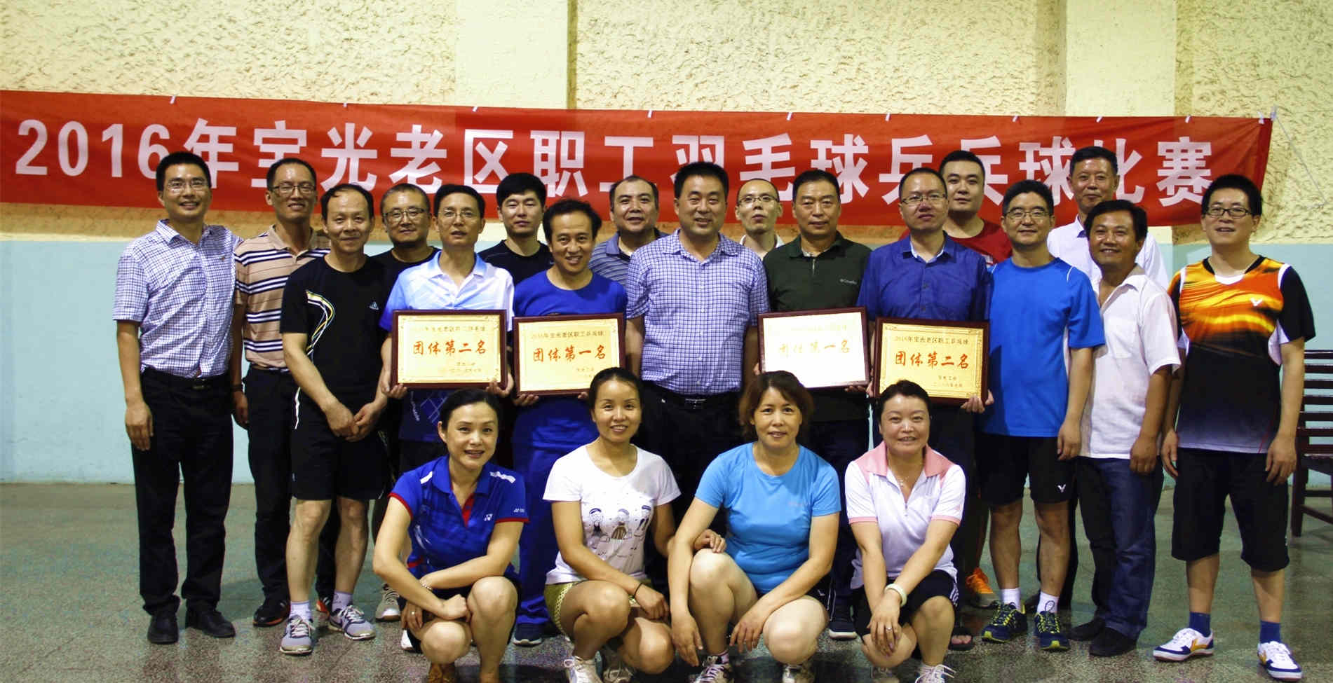 比赛活动得到老区各单位的大力支持,职工参与热情高涨,比赛在工会副主席姜万宏宣布比赛规则后拉开帷幕。赛场上气氛紧张而热烈,各参赛队队员精神饱满、战术灵活,浑汗如雨,比赛场面精彩不断……经过近4个小时的激烈角逐,气体公司分别获得羽毛球和乒乓球团体赛第一名,动力部获得羽毛球团体赛第二名,电子玻璃厂获得乒乓球团体赛第二名,其他参赛队获得优秀奖。赛后,参赛队员进行了合影留念。