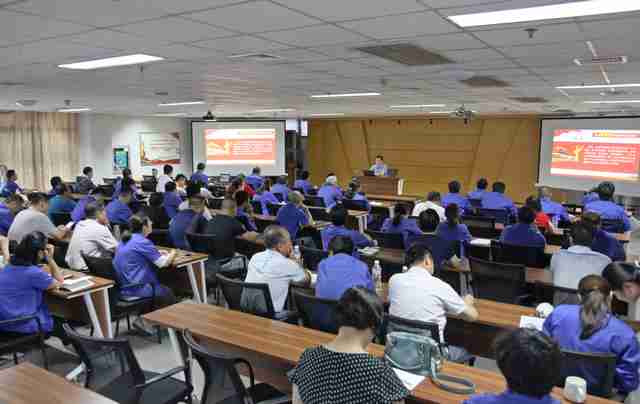 为加强党员对新党章及十九大精神的理解,推动党的十九大精神进车间、进班组活动持续深入,使广大党员干部职工深刻领会十九大精神的丰富内涵,学会用习近平新时代中国特色社会主义思想指导工作,6月6日19:30时,公司纪委书记、工会主席付宗喜同志在科技大楼二楼大会议室讲授了以“学习新党章不断提升党性修养”为主题的专题党课。公司工会委员会委员、各分会主席,团委委员、各团支部书记,以及党群党支部和零件产品制造部党支部党员共90余人聆听了专题党课。