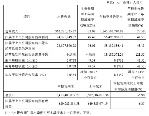 伟德体育官方网站股份2023年三季度主要会计数据和财务指标
